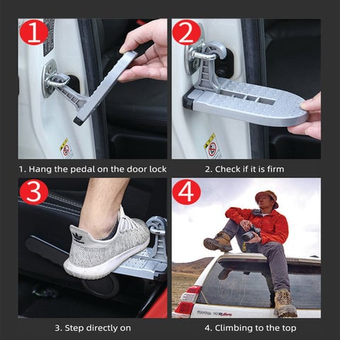 ✅ آمن وموثوق: يتم ربط خطوة المزلاج هذه بسهولة بمعظم المركبات باستخدام مزلاج باب السيارة العالمي، مما يوفر دعمًا قويًا وموثوقًا يصل إلى 400 رطل.