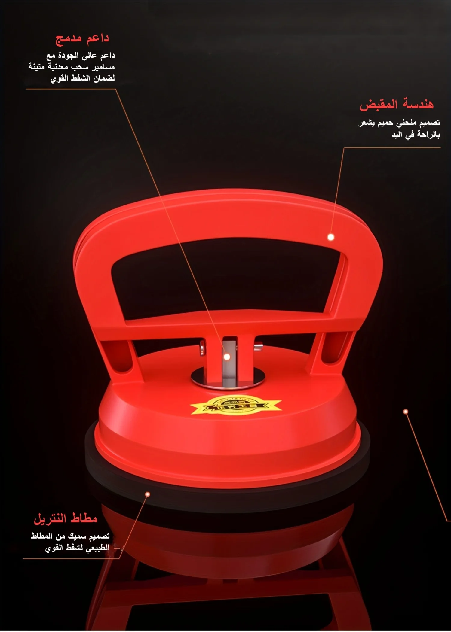 مصنوع من (PC) مادة البولي بروبيلين والبولي فينيل كلوريد المتين، ويتم لحام المقبض والجسم لهذا الساحب بإحكام في كوب الشفط، مما يضمن عدم وجود أي انقطاع أو قطع اتصال. كوب الشفط السفلي مصنوع من مطاط طبيعي عالي القوة وشديد التحمل
